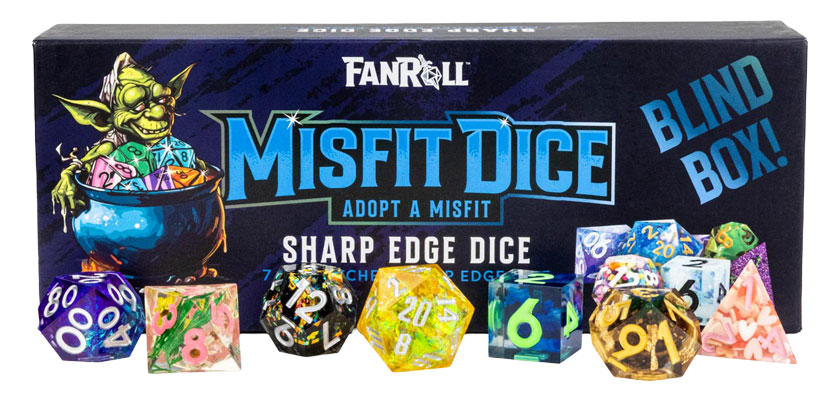 Because they’re “misfits,” no two pulls are guaranteed to be alike—you might discover bold swirls of color, glittering inclusions, smoky transparencies, or other enchanting quirks that make these dice stand out from the crowd. Perfect for collectors, risk-takers, and anyone who loves a bit of mystery at the table, these dice bring personality and unpredictability to your rolls.